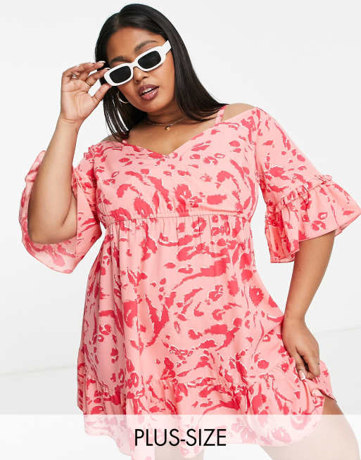 Yours cold shoulder blouse with frill detail in pink animal print