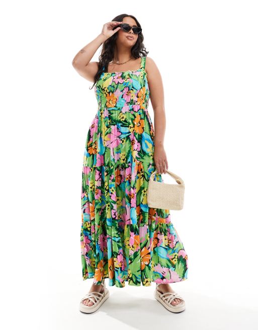 Yours sheered strappy maxi dress in tropical print