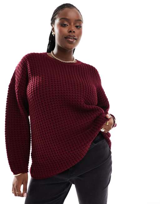 Yours waffle jumper in burgundy
