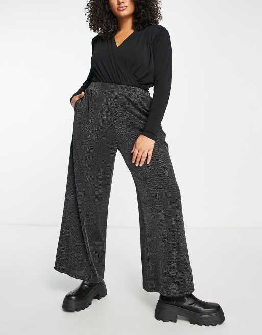 Yours wide leg glitter trouser in black