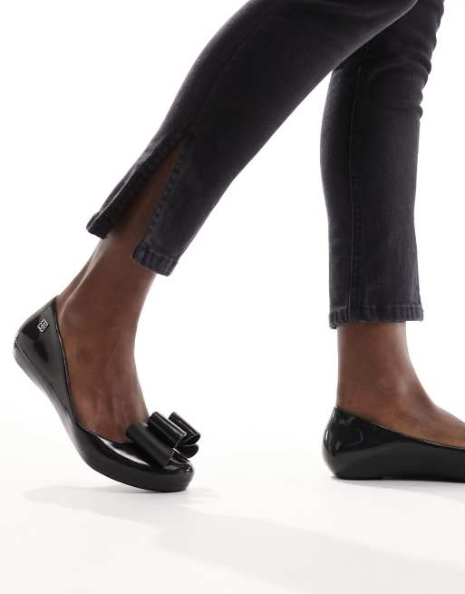 Zaxy pop bow classic flat shoes in black