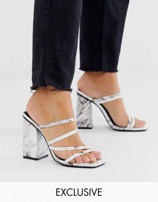 Z_Code_Z Exclusive Nabai vegan square toe block heeled sandals in white marble